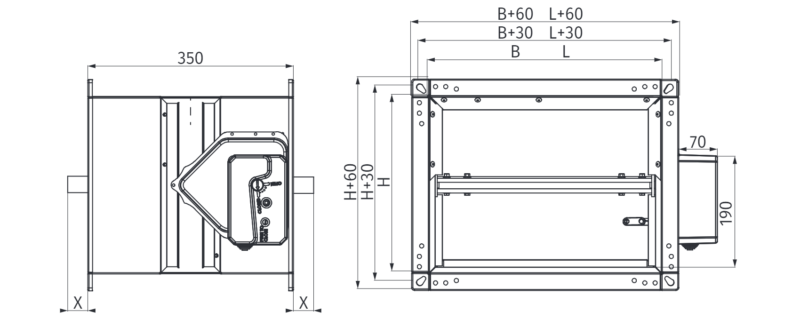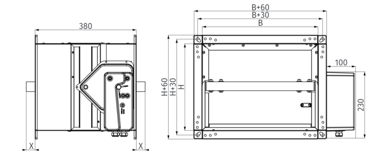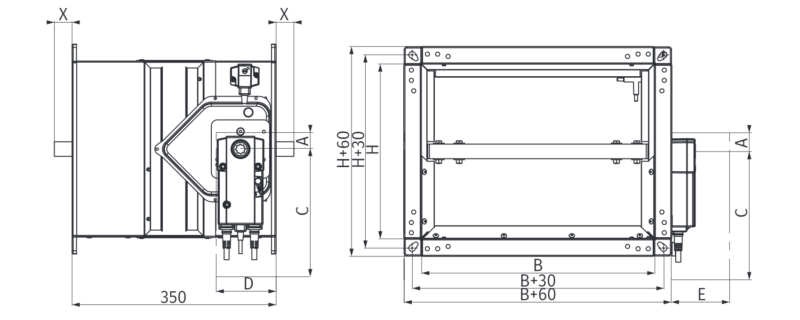 • Casing made of galvanized sheet steel, damper blade made of special insulating material, damper blade shaft and push rod made of stainless steel, bearings made of brass, seals made of polyurethane and elastomer